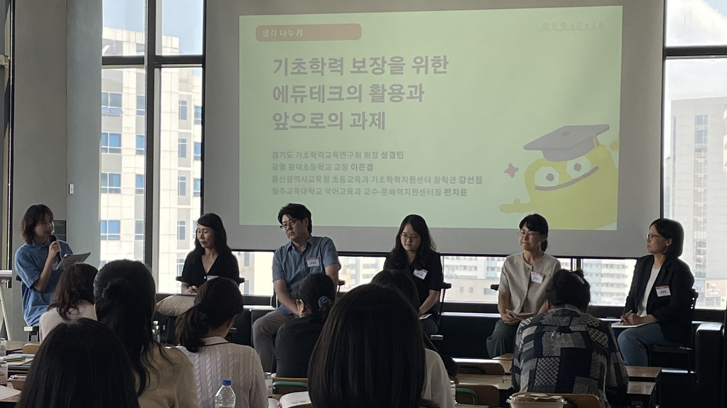 기초학력과 에듀테크에 대한 고민으로 다양한 관계자들이 함께한 자리인만큼, 교사 개인뿐만 아니라 학교 관리자, 교육청 관계자, 학계 연구자, 에듀테크 기업이 함께 협력해야 한다며 모두 입을 모았습니다. 경기도 기초학력교육연구회 성경민 회장님은 "열심히 하고 싶은데 방법을 모르겠는 선생님들에게 오늘의 사례가 좋은 참고 자료가 될 수 있다"며, 교사를 위한 지원 시스템이 다방면으로 구축될 필요성에 대해 이야기했습니다.