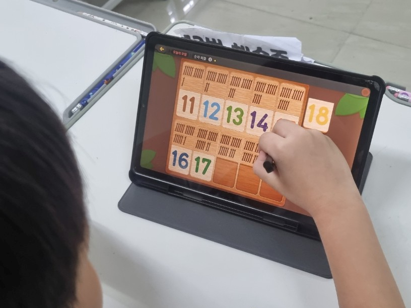 토도수학의 가장 좋은 점은 다양한 교구를 구하기 어려운 상황에 많은 도움이 되었다는 거예요. 태국의 경우, 교구가 한국만큼 발달돼 있지 않고 한국 교구를 구입하더라도 배송에 오랜 시간이 걸리기 때문에 그 아쉬움을 토도수학으로 해결할 수 있었어요. 물론 앱 화면을 터치하는 것이라 직접 조작물을 물리적으로 만질 수는 없지만, 숫자 블록판을 이용하는 ‘숫자 퍼즐’ 같은 활동을 통해 학생들이 시각적으로 수의 양이나 개념을 익히는 데 많은 도움을 받을 수 있었습니다. |