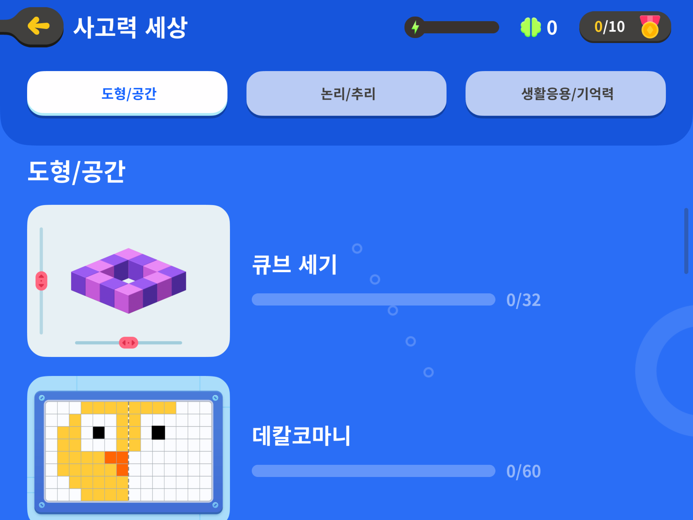 또 ‘사고력 세상’에서 수학적 사고력과 공감각을 키울 수 있는 활동을 많이 활용했습니다. ‘큐브 세기’나 ‘칠교’와 같이 실제로 많이 실행해보면서 공간 감각을 익힐 수 있는 활동이 있고요. 특정 횟수 안에 원하는 모양으로 아이스크림을 쌓아올리는 ‘아이스크림 옮기기’ 활동으로 수학적 문제 해결력을 신장할 수 있었습니다. 다양한 활동을 레벨에 따라 진행할 수 있기 때문에 수학 교구가 부족한 교육 환경에 큰 도움이 되었죠.